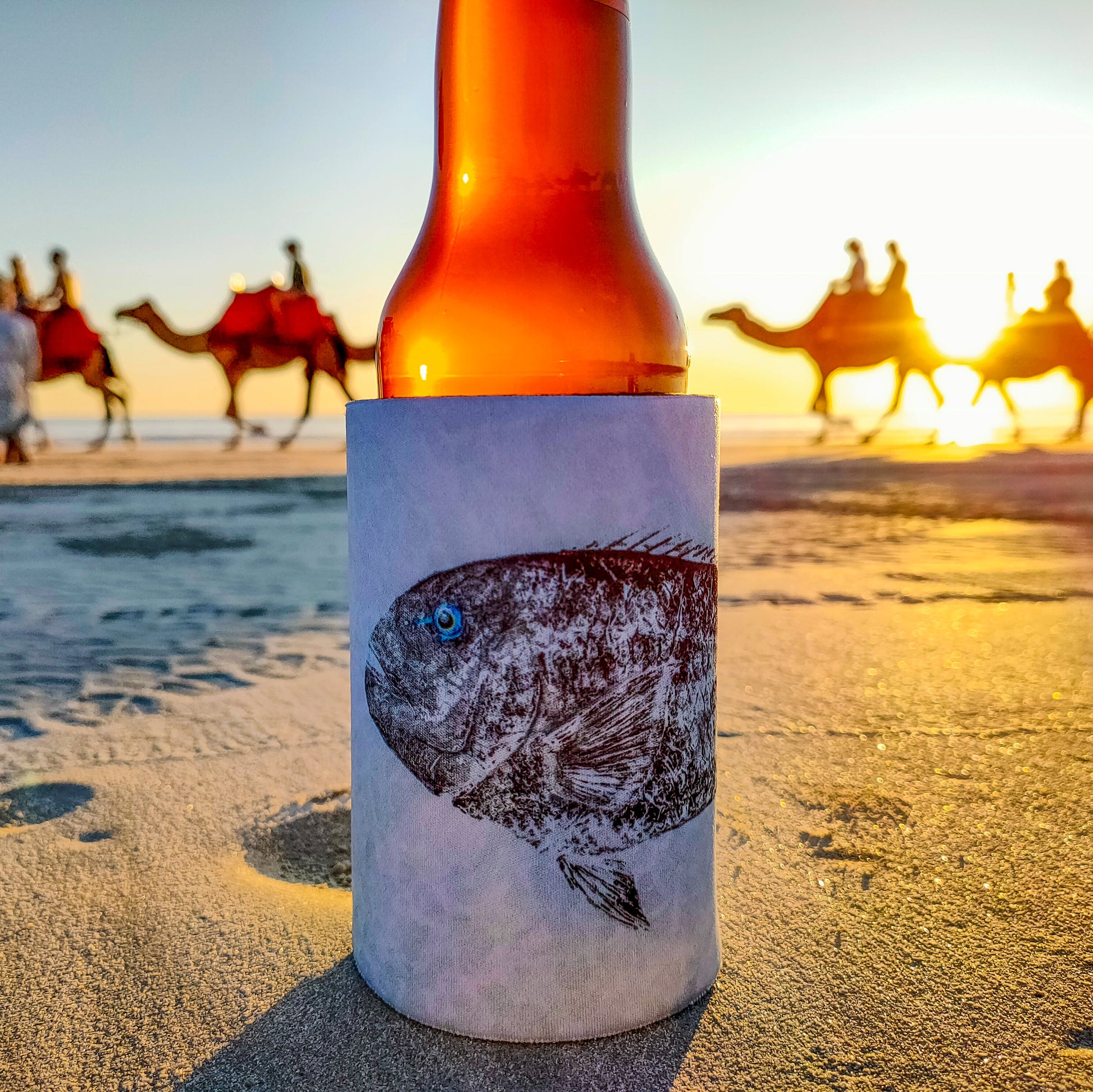 High quality sublimation printed with Gyotaku artwork. 5mm thick neoprene stubby with stitched in base. Guaranteed to make your beers taste better^